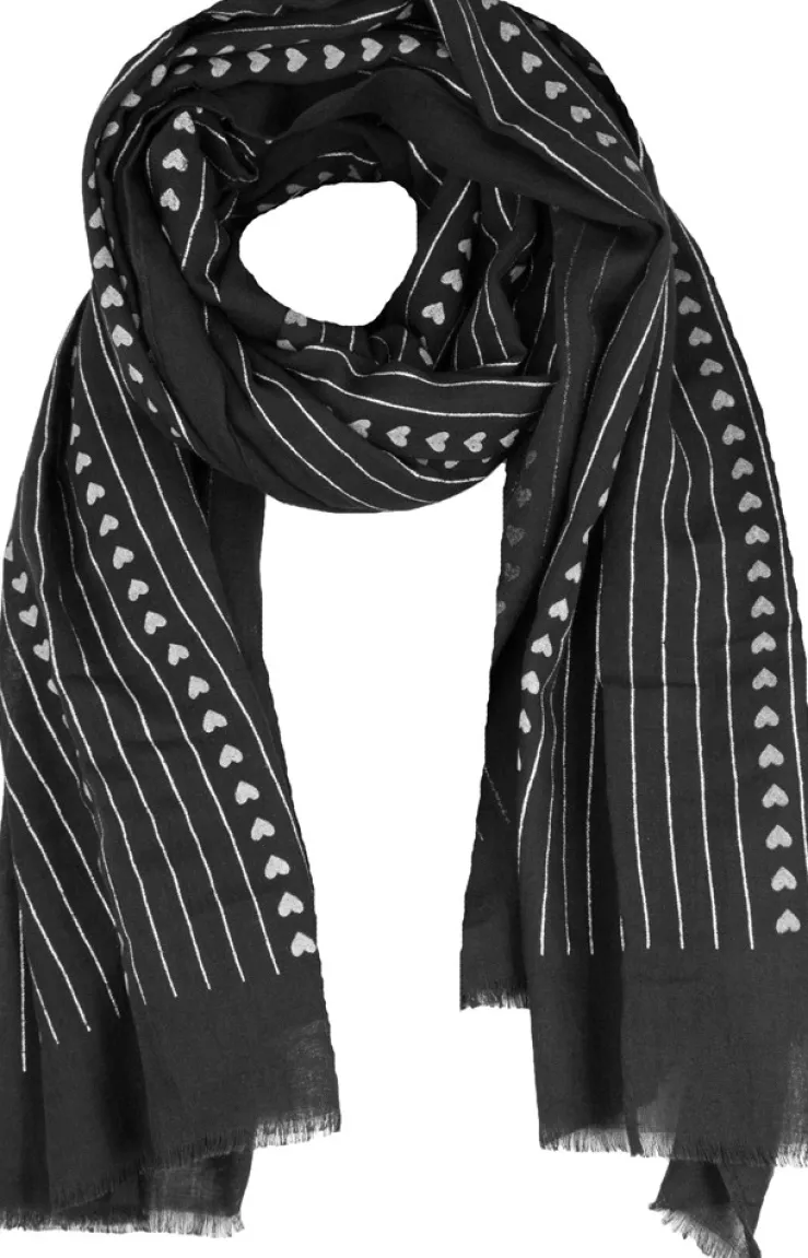 Wunderschöner, angenehm zu tragender Schal im schlichten Look mit hellen Herzen und glänzenden Glitter Streifen Highlights.