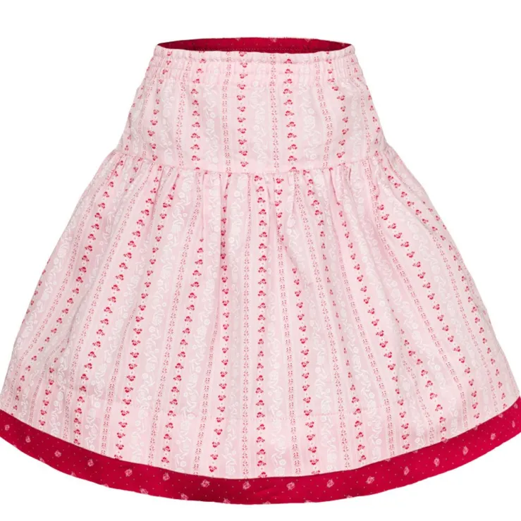 Der Rock ist aus einem schönen Baumwollstoff hergestellt, eine glänzende Borte ziert den süßen, traditionellen Kinderrock. Der Wenderock kann beidseitig getragen werden, er hat auf der pink-farbenen Seite ein zartes Blümchenmuster und auf der rosa-pinken Seite ist er mit schönen Blumenranken bedruckt. Mädchen fühlen sich mit diesem Rock ganz sicher rundum wohl. Der Sommerrock ergänzt perfekt das Trachtenoutfit für einen Tag auf der Wiesn, er ist aber auch im Alltag einfach schön zu tragen.