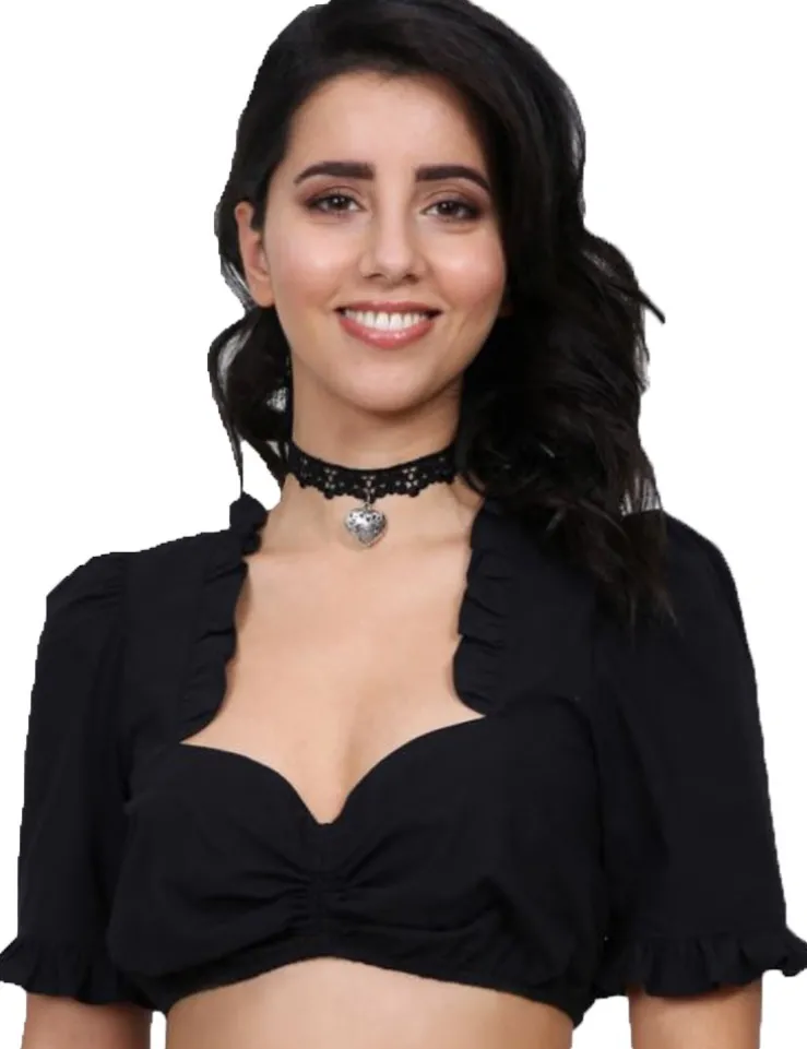 Zauberhafte klassische Dirndlbluse für Damen von Krüger-Dirndl. Die Bluse ist aus einem angenehm zu tragenden Material hergestellt, der eckige Ausschnitt ist mit einem verspielten Rüschenkragen verziert. Die Bluse kann am Ausschnitt gerafft werden und zaubert so ein verführerisches herzförmiges Dekolleté. Der eingearbeitete Gummizug am Blusenabschluss verleiht der Trachtenbluse einen perfekten Sitz und eine gute Passform.