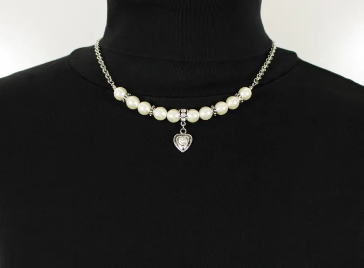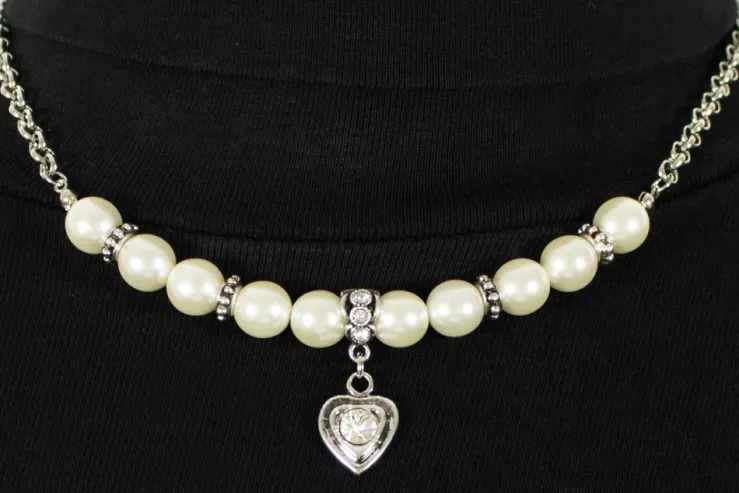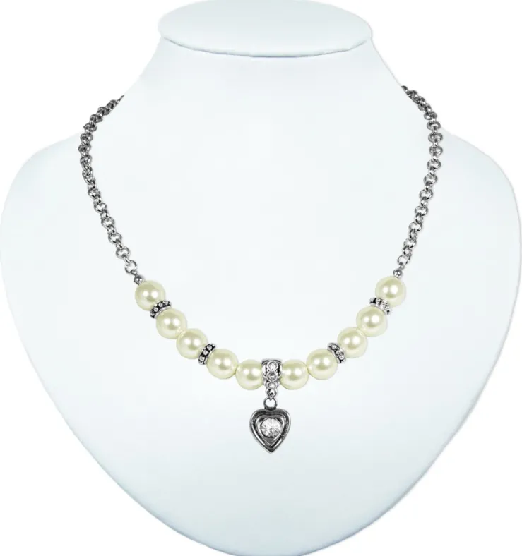 Mit diesem wunderschönen Halbperlencollier Juliana zeigen Sie Stil und ergänzen damit Ihr Dirndl, Trachtenoutfit aber auch Ihr Brautkleid perfekt.