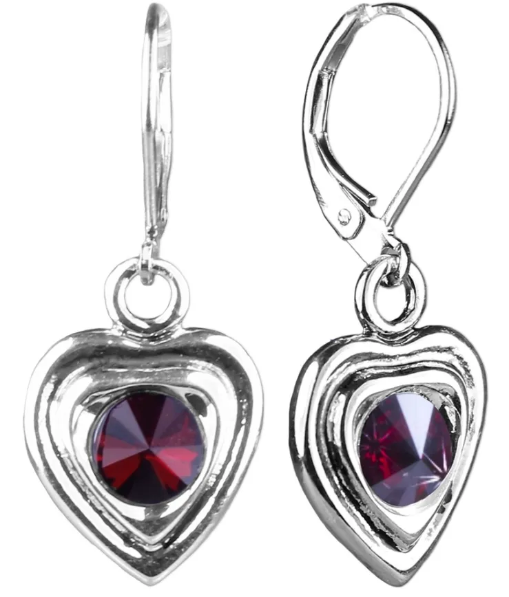 LUISIA® Ohrringe Lisanne Herzanhänger mit Kristallen von Swarovski® – Dunkelrot
