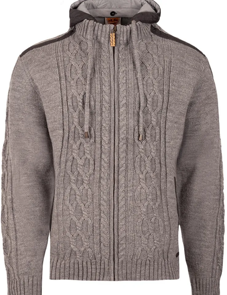 Der Trachtenjanker ist in grobem Strick hergestellt und hat ein schönes Zopfmuster. Er wird vorn mit einem Reißverschluss geschlossenund ist zusätzlich mit einer abnehmbaren Kapuze versehen. Die Jacke ist bei uns in verschiedenen Farben erhältlich, in der hier angebotenen modernen und doch traditionellen Farbe Grau wird die Weste ganz sicher zu Ihrem Lieblingsbegleiter. Das angenehm tragbare Woll-Material wird Sie überzeugen.