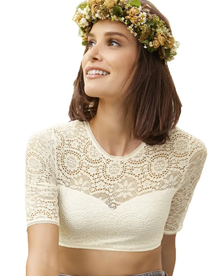 Die Bluse hat einen Rundhalsausschnitt und besonders schön sind die dekorativen Saumabschlüsse. Der eingearbeitete Gummizug am Blusenabschluss verleiht der Spitzenbluse einen perfekten Sitz und eine gute Passform. Mit dieser Spitzendirndlbluse sind Sie beim Volksfest, Oktoberfest und festlichen Anlässen bestens gekleidet.