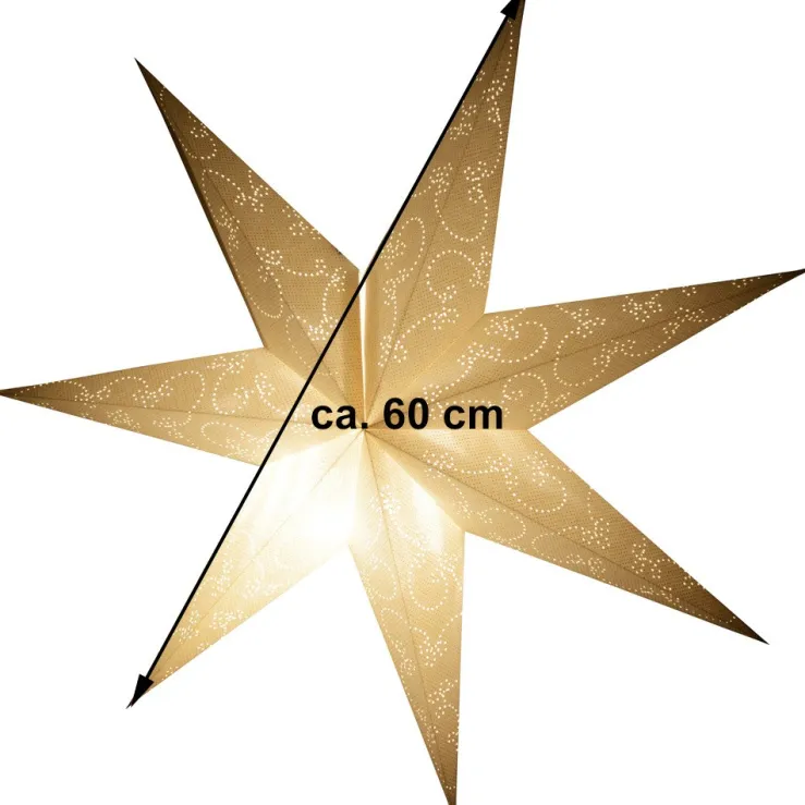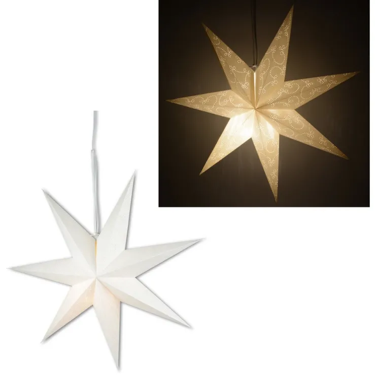 Mit diesem wunderschönen Papierstern setzten Sie Ihr Fenster richtig in Szene und verbreiten weihnachtliche und festliche Stimmung. Der Stern kann mit einer herkömmlichen Lichterkette betrieben werden oder auch mit einer speziellen Fensterdekosternbeleuchtung. Die Beleuchtungsvorrichtung ist nicht im Lieferumfang enthalten.
