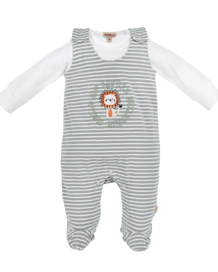 Der niedliche Baby Strampelanzug für kleine Jungen ist aus einem weichen Baumwollmischgewebe in grün und weiß und liegt weich und soft auf Babys Haut. Der Print mit dem grinsenden Löwen und der umrandenden Schrift Hello my little Sunshine machen den Strampler zu einem zauberhaften Baby Set. Druckknöpfe an den Schultern und im Schritt machen das An- und Ausziehen super einfach. und auch das weiße Langarmshirt ist an den Schultern mit Druckknöpfen versehen.