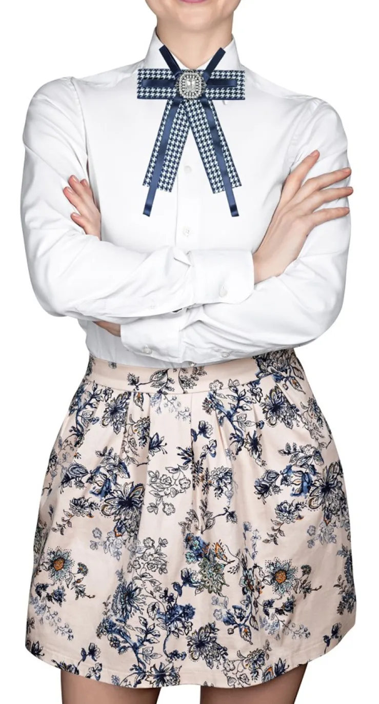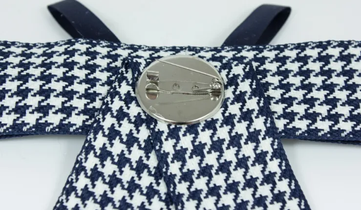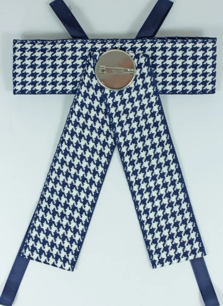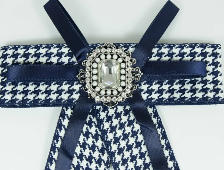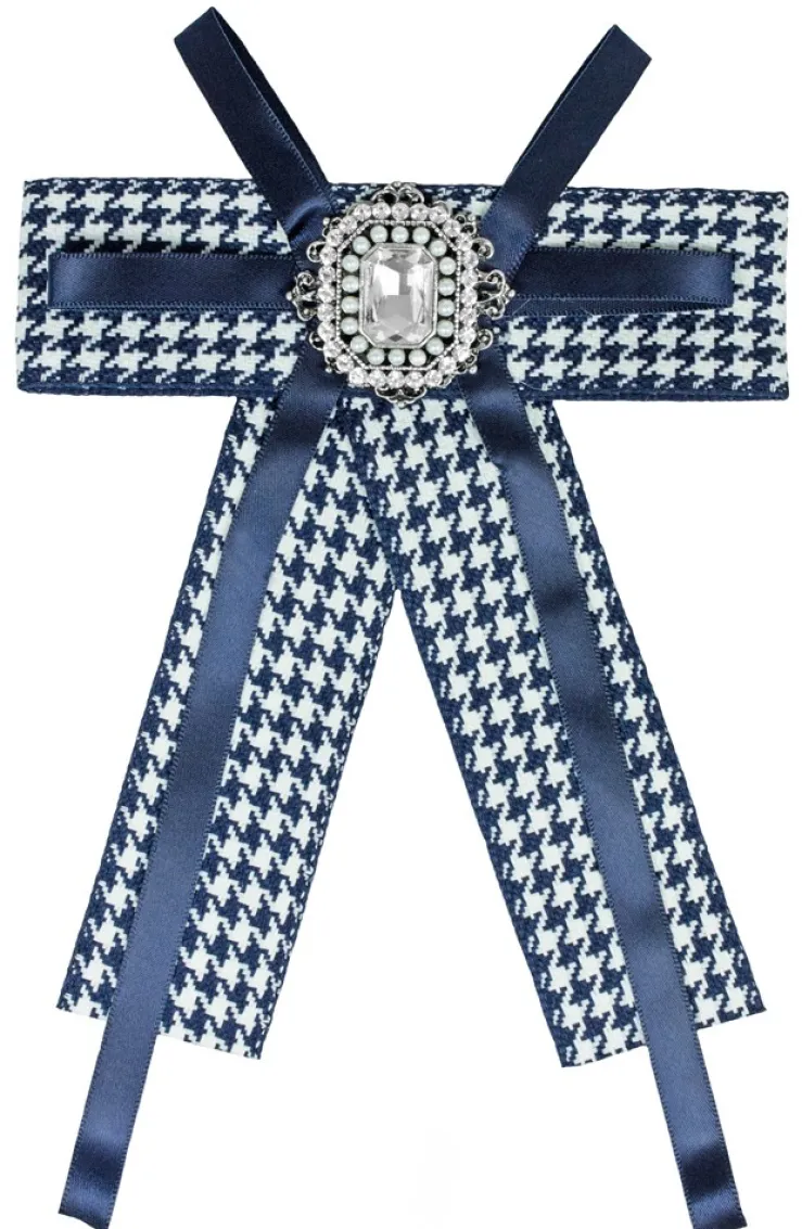 Brosche Barock Schleife mit eckigem Schmuckstein – Kariert – Blau