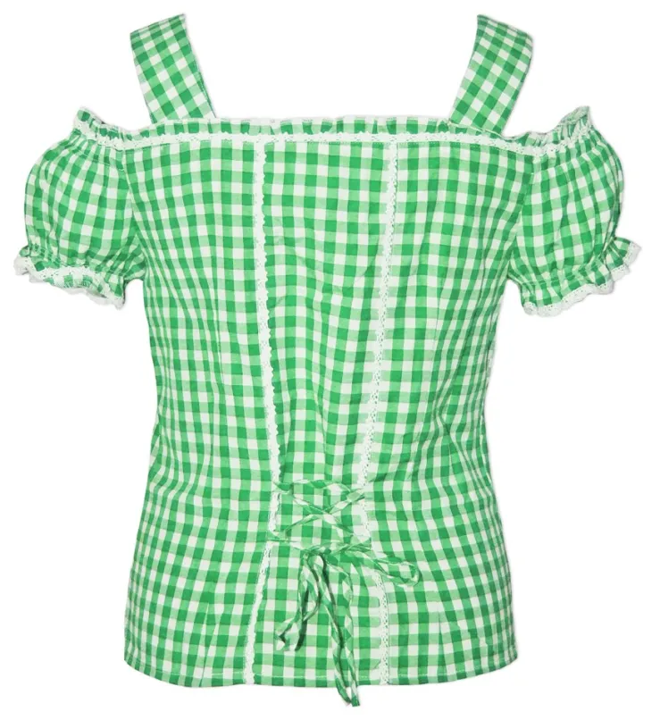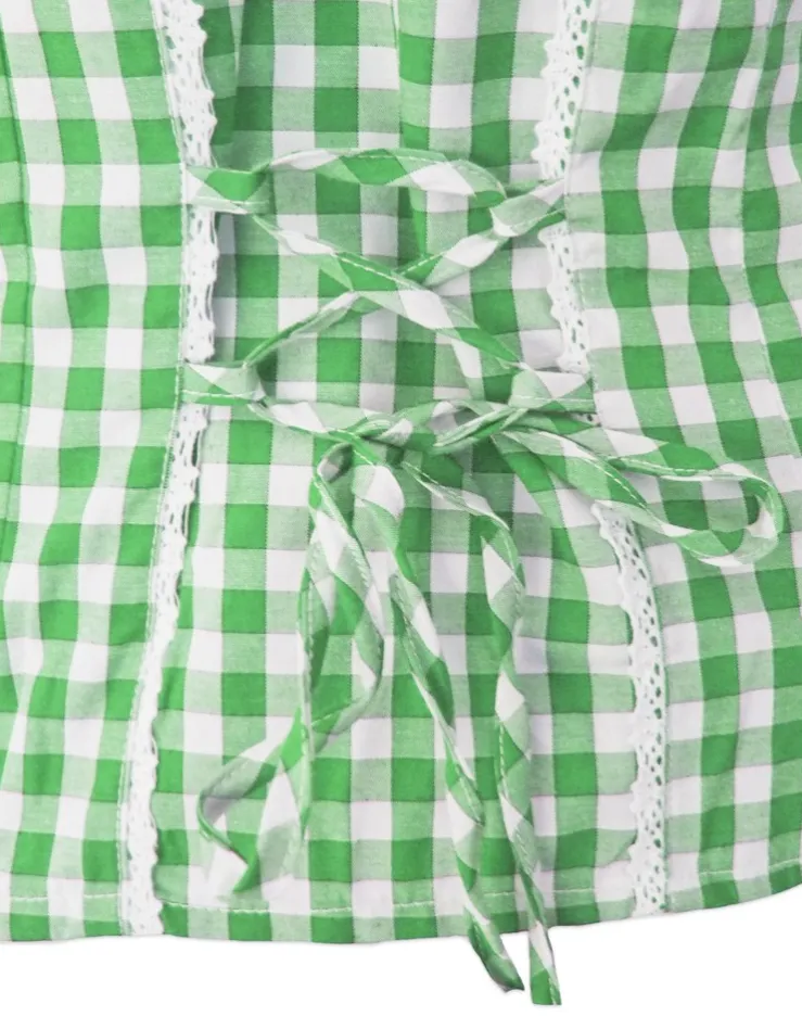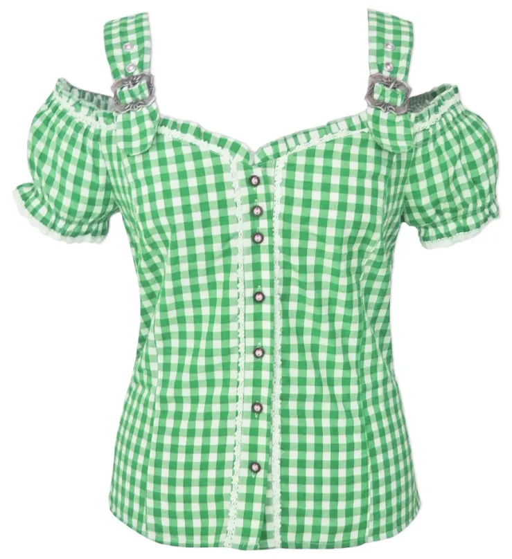 Die Marken Bluse im beliebten Carmenstil ist liebevoll mit Spitzen an der Knopfleiste und an den Ärmeln gearbeitet. Die Im Rücken kann die Bluse leicht geschnürt und tailliert werden. Geschlossen wird die sexy Bluse vorne mit Hornknöpfen. Schöne Zierschnallen runden die Trachtenbluse ab und geben dem Trachtenoberteil eine traditionelle Note. Durch den Baumwollanteil bietet die karierte Trachtenbluse auch an wärmeren Tagen einen hohen Tragekomfort.