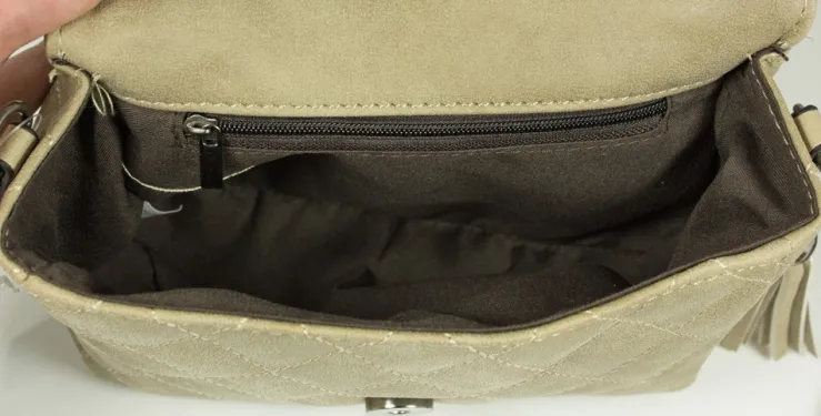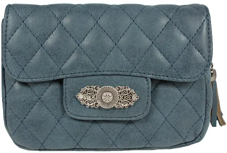 Die zauberhafte kleine Damentasche hat ein großes Fach und ein kleines Fach, welches mit einem Reißverschluss geschlossen wird. Sie ist aus einem Lederimitat in Wildlederoptik hergestellt und der mitgelieferte Trageriemen ist farblich an die Damentasche angepasst und in der Länge verstellbar. Zu einem echten Hingucker wird diese süße Trachtentasche durch die dekorative Blumen Applikation aus Metall und eine am Reißverschluss angebrachte Fransen Troddel.