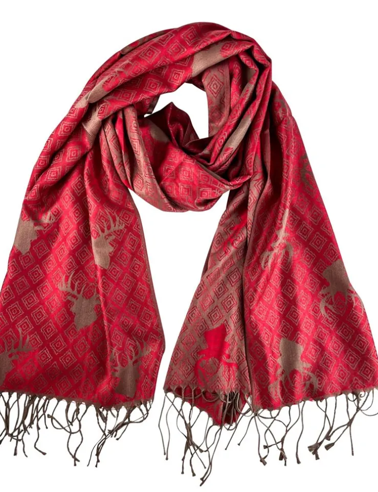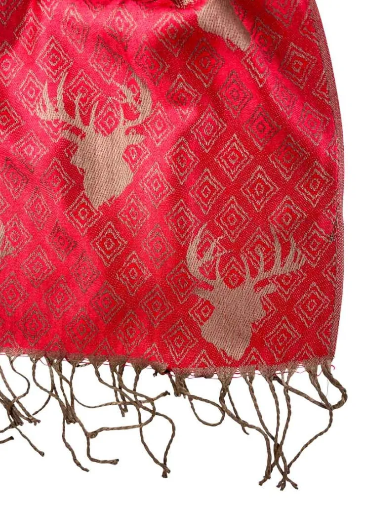 Wunderschöner, angenehm zu tragender Fransen-Schal mit Rauten-Muster und großem Hirschkopf-Motiv. Es handelt sich hier um eine schöne Webware, die Sie ganz sicher begeistern wird. Ein hübscher Schal für jeden Tag und Anlass! Der weiche Stoff liegt angenehm auf der Haut und das stylische Muster macht diesen soften Schal zu einem vielfältig kombinierbaren Accessoire, das perfekt sowohl zu einem Mantel als auch zu einer Jacke passt. Der Schal hat eine tolle Größe, so dass er auf vielfältige Weise getragen werden kann. Er ist auch ein besonderes Geschenk für Freunde, Familienmitglieder oder natürlich Trachtenliebhaber.