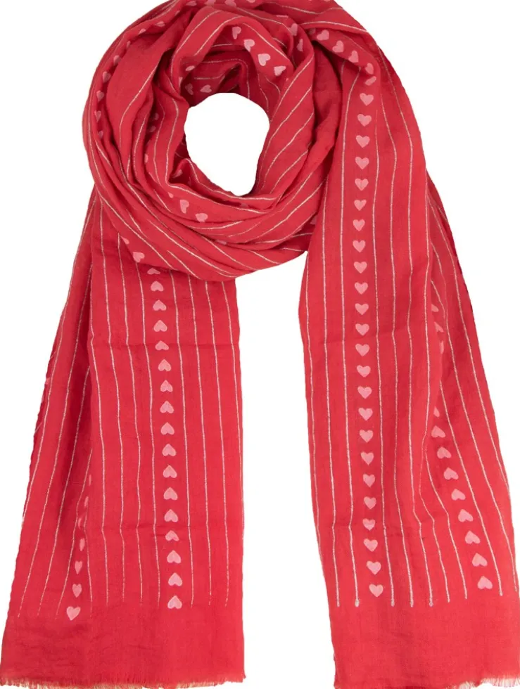 Wunderschöner, angenehm zu tragender Schal im schlichten Look mit hellen Herzen und glänzenden Glitter Streifen Highlights.