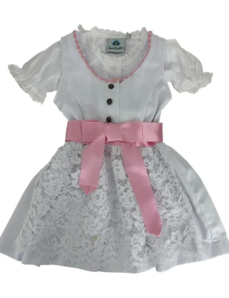 Isar-Trachten Baby Dirndl "Maite" 3-tlg. mit Bluse 63001 | Weiß Rosa