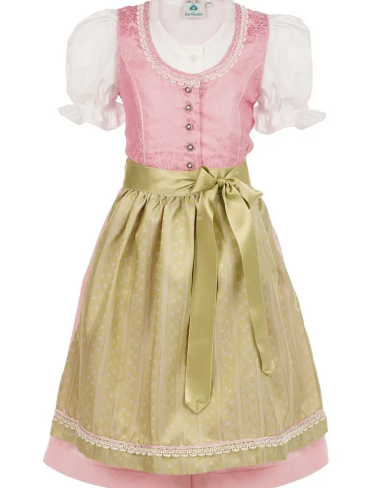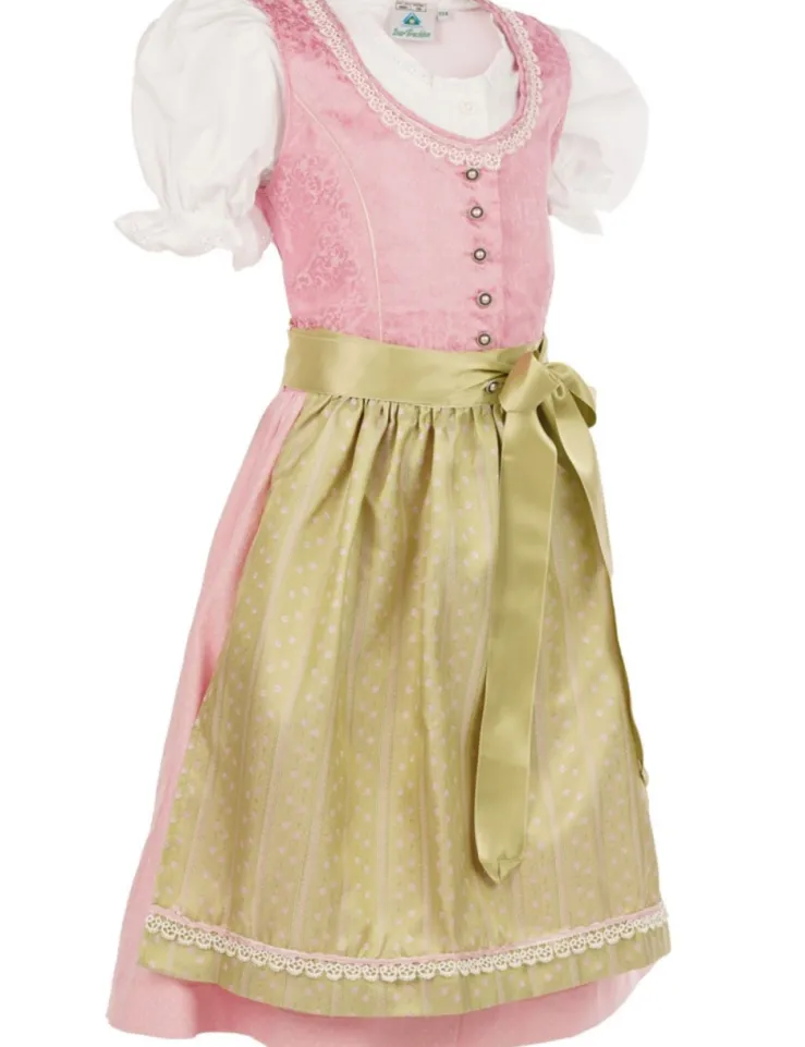 Isar-Trachten Kinder Dirndl "Prinzess" 3-tlg. mit Bluse 43102 | Festlich – Rosa Grün