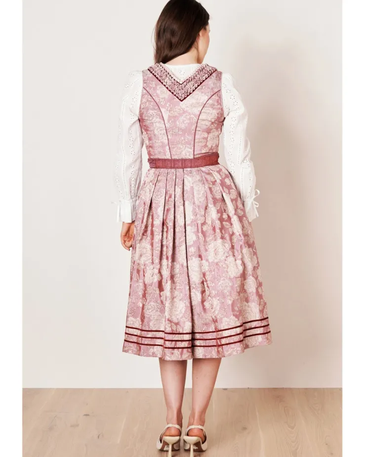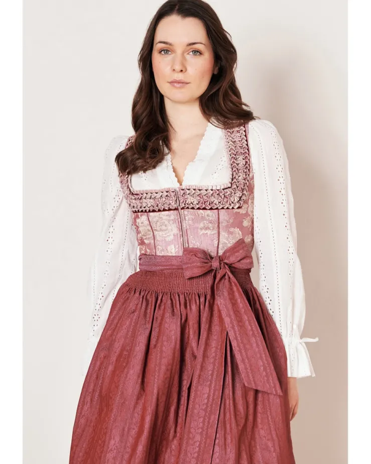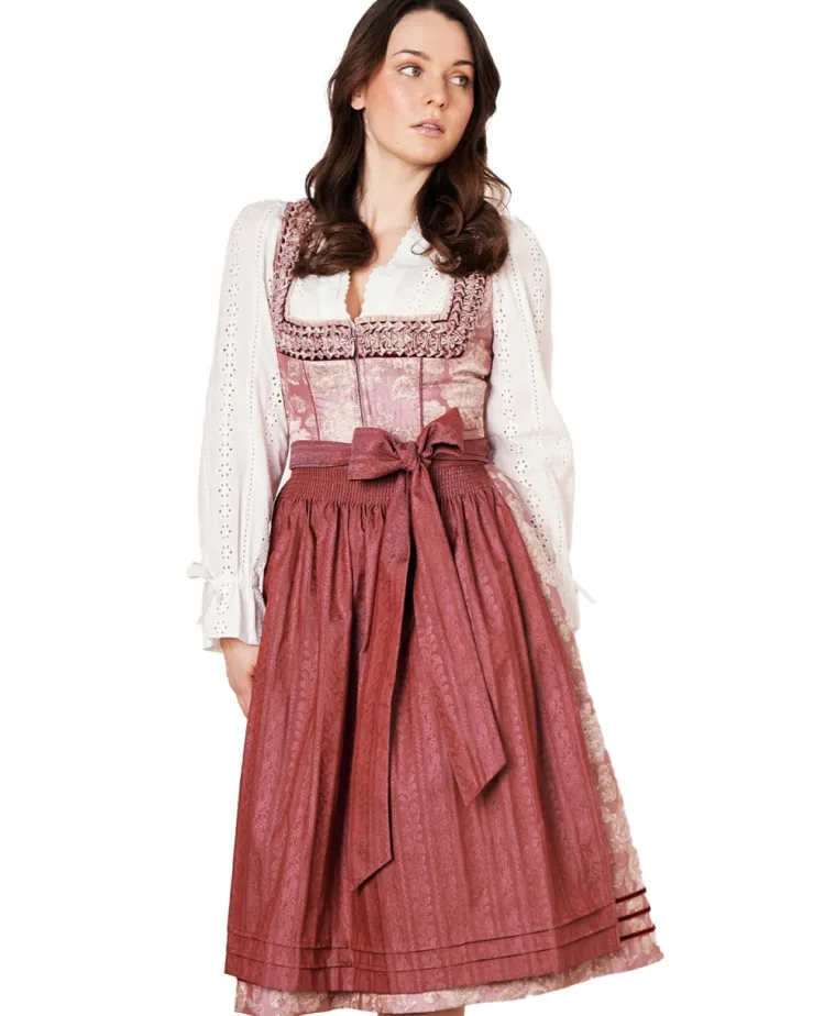 Das frische Dirndl Clara aus der neusten COLLECTION-Kollektion von Krüger vereint traditionellen Stil mit modernem Flair. Das floral gemusterte Design und der taillierte Schnitt schmeicheln deiner Figur und setzen sie gekonnt in Szene. Der Rock hat eine Länge von 70cm und reicht bis unterhalb des Knies, was für einen eleganten Auftritt sorgt. Zwei Eingrifftaschen im Rock bieten praktischen Stauraum. Eine Reißverschluss ziert das Mieder und dient als Verschluss. Der geradlinige Ausschnitt verleiht dem Dirndl eine romantische Note. Die schlichte Schürze mit tollem Schleifenband harmoniert perfekt mit dem Dirndlkleid. Mit diesem Dirndl bist du der Hingucker auf jeder Veranstaltung.