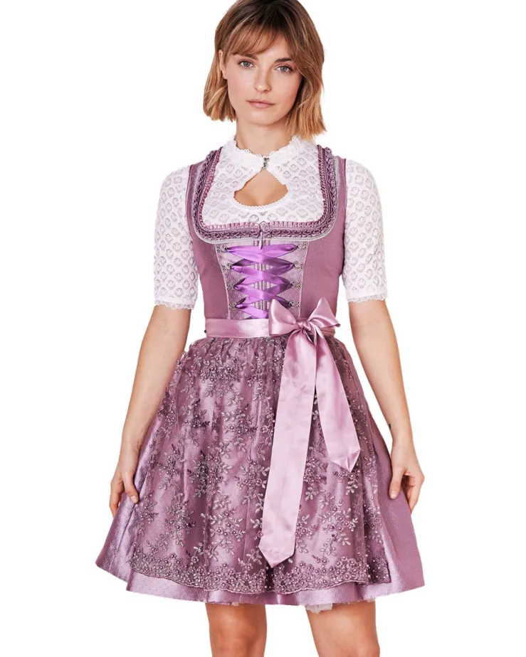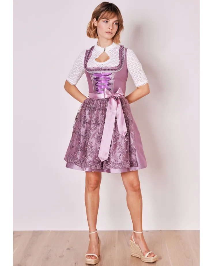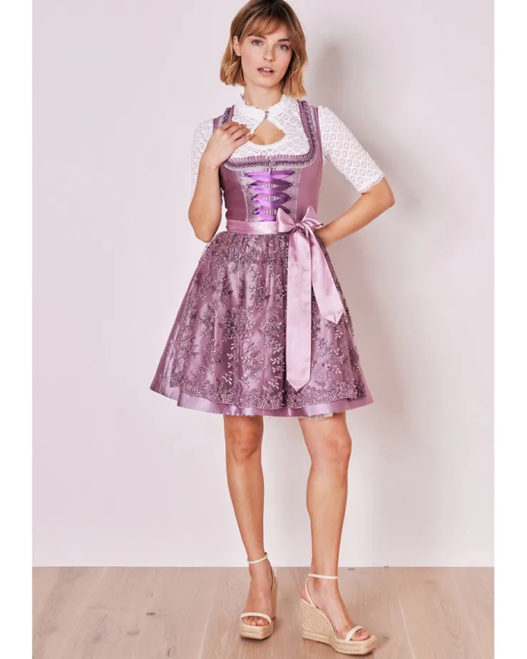 Krüger MADL Dirndl "Kalila" mit Spitzenschürze 419367 | Lila 50cm