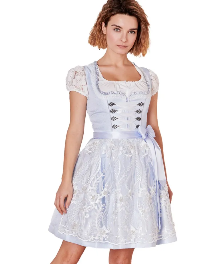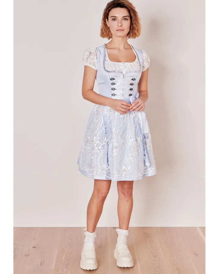 Krüger MADL Dirndl "Samantha" mit Spitzenschürze 419167 | Hellblau 50cm
