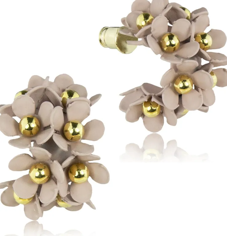 Die hübschen, halboffenen Creolen Mia von LUISIA mit den niedlichen Blüten sind ein zauberhafter Hingucker und der Ohrschmuck lässt sich wunderbar zu Dirndl, Tracht, Festtagsmode und auch Abendgardarobe kombinieren.
