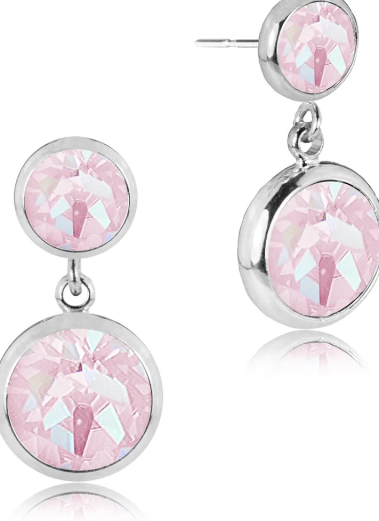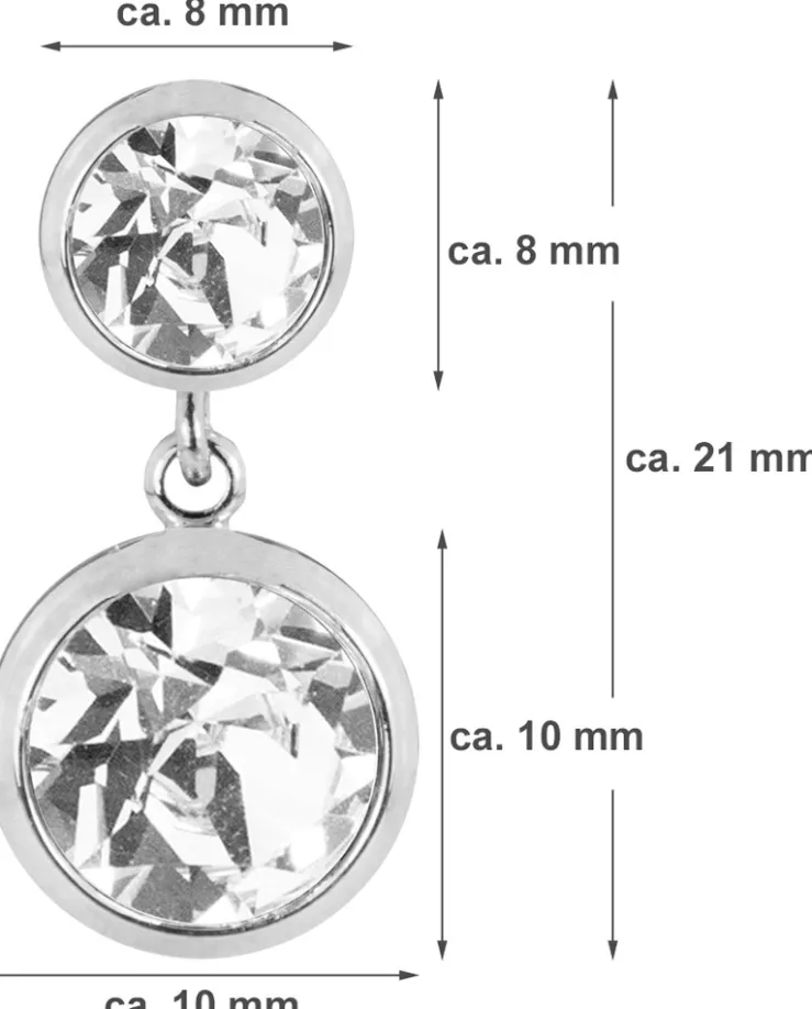 Die 2 cm langen Damenohrringe werden mit einem Steckerhalter verschlossen und besitzen einen ca. 7 mm und einen ca. 9 mm großen Kristall von Swarovski®.