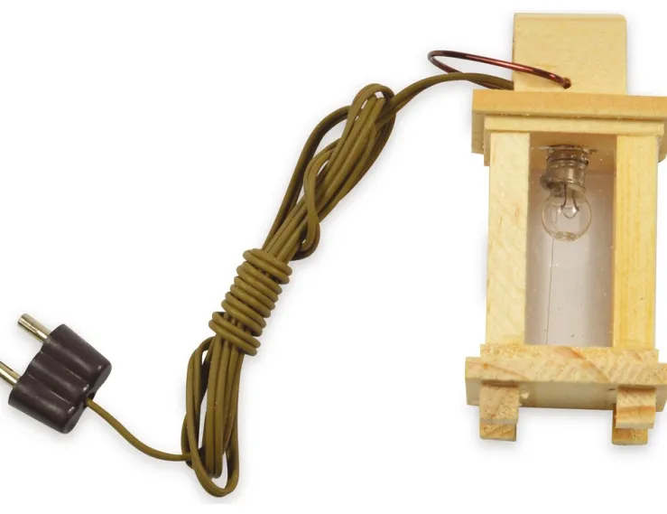 Diese süße, ca. 6 cm große Holzlaterne ist aus Naturholz mit weißem Glas gefertigt und verströmt ein warmweißes Licht. Die zauberhafte Beleuchtung setzt Ihre Weihnachtskrippe zu Weihnachten und auch die Szenerie Ihrer Modelleisenbahn ins rechte Licht.