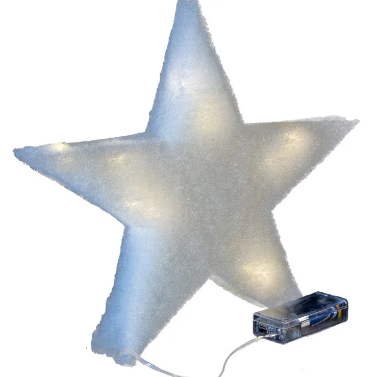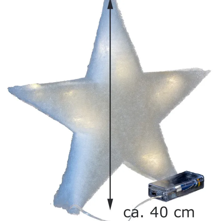 Der hübsche Stern ist aus weichem, weißen Polyester hergestellt und mit einer integrierten 20er LED Minilichterkette mit Timer ausgestattet. Die beleuchtbare Weihnachtsdekoration ist für Innenräume geeignet und setzt im Advent und in der Weihnachtszeit warmweiß leuchtende Akzente.