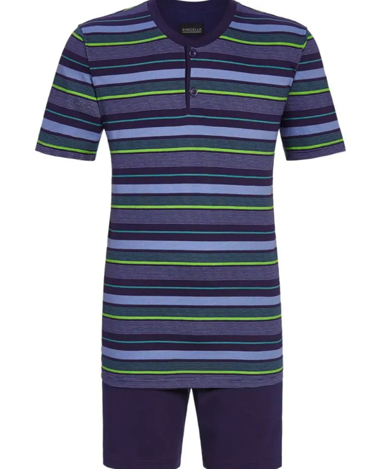 Besten Tragekomfort macht diesen Shorty aus unserer Herren-Kollektion aus. Der Shorty überzeugt durch angenehm weiche Baumwolle und die farblich perfekt abgestimmte Kombination von geringeltem Oberteil mit unifarbener Shorts. Seitliche Eingrifftaschen in den Shorts dürfen natürlich nicht fehlen. Ein modisches Strickbündchen und eine kurze Knopfleiste geben den letzten Schliff.