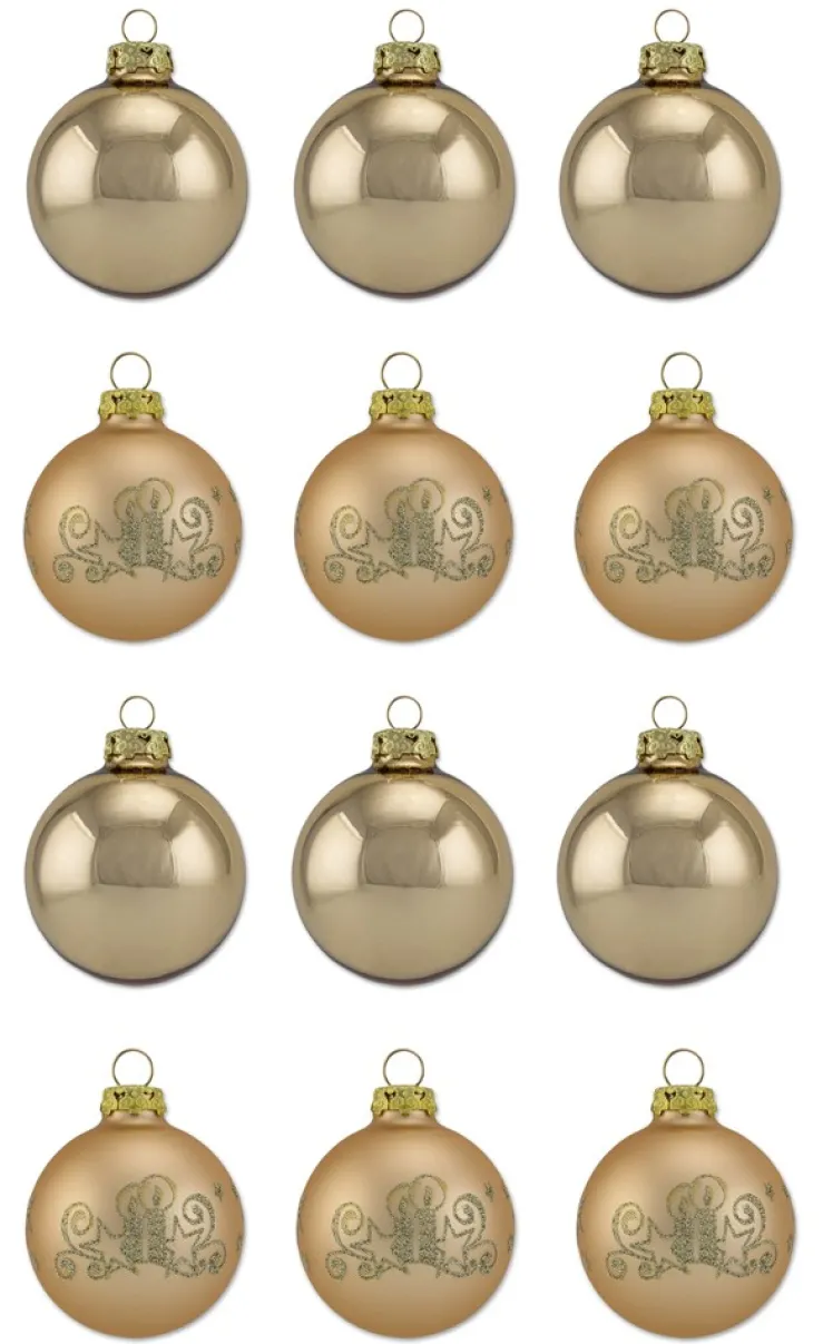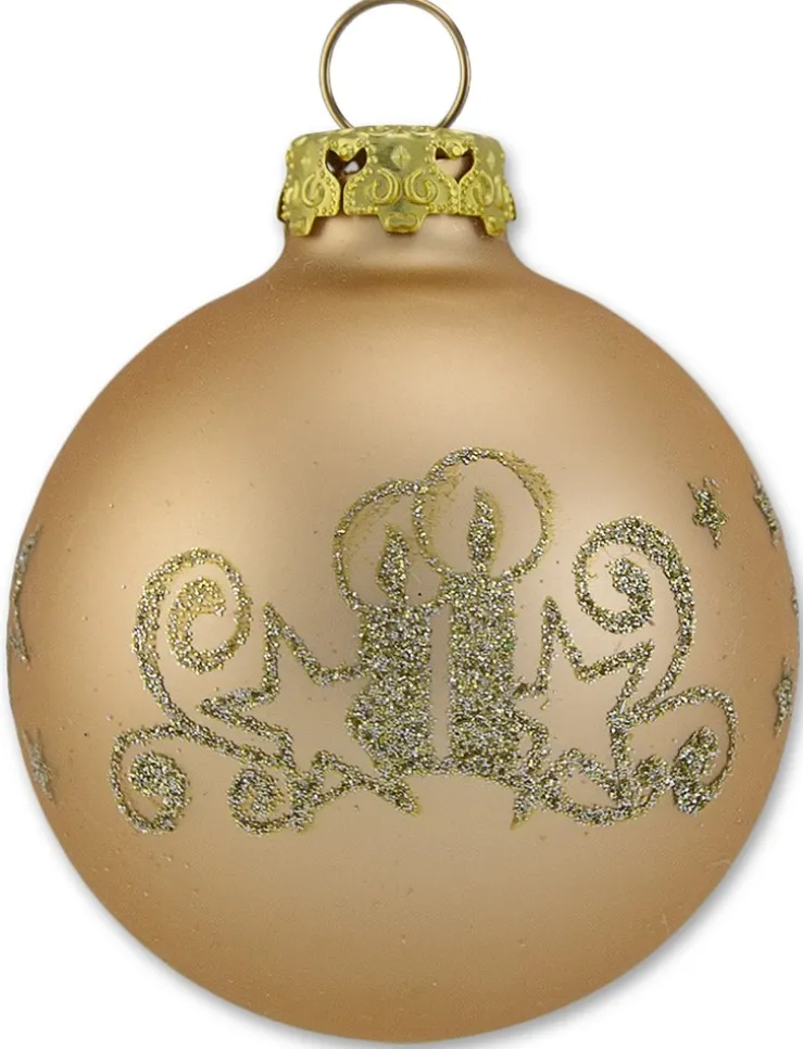 Und mit diesem schönen 12-teiligen Set von Thüringer Glasdesign wird Ihr Nadelbaum, egal ob echt oder künstlich, zu einem der schönsten geschmückten Weihnachtsbäume an Heiligabend werden. Das mehrteilige Glaskugel-Set besteht aus 6 cm großen Kugeln, einmal 6 Stück in glänzenden Gold und einmal 6 Stück matt mit wunderschönem Glitzer Dekor in Form einer Kerze. Die Weihnachtskugeln werden mit Metallaufhänger sicher verpackt geliefert.