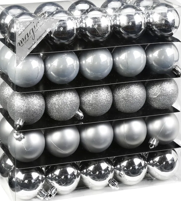50 silberfarbene Christbaumkugeln aus bruchsicherem Kunststoff von Inge-Glas® Erfreuen Sie sich und Ihre Lieben mit diesem Mega-Pack Christbaumkugeln aus robustem Kunststoff! Ganze 50 Stück erhalten Sie hier in verschiedensten Silber Designs , ob Matt oder Glänzend! Diese Kugeln sind ein Qualitätsprodukt der Firma Inge-Glas mit Sitz in Deutschland. Lieferumfang & Produktinfos: 50 Christbaumkugeln ca. ø 5 cm aus bruchsicherem Kunststoff ACHTUNG! Nicht für Kinder unter 3 Jahren geeignet! Kleinteile können verschluckt werden! Kein Spielzeug! Dekorationsartikel!