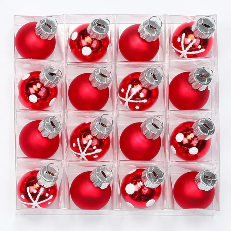 Weihnachtskugeln Merry Red 2cm/16Stk. Dekor Weiß