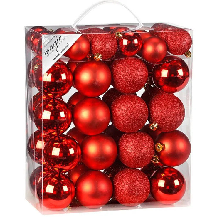Weihnachtskugeln Rot Kunststoff 4cm+6cm/50Stk. bruchsicher